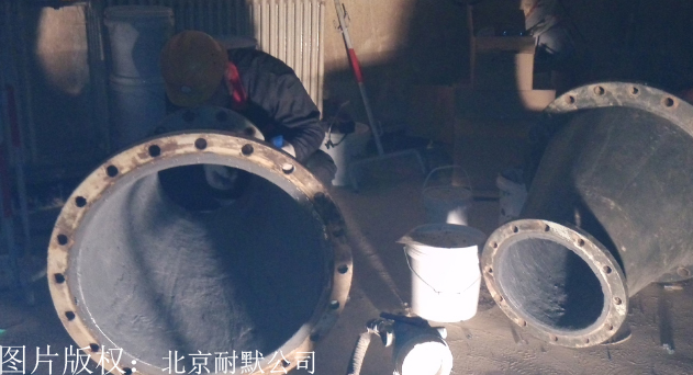 圖(1)工人使用耐磨顆粒膠KN7051修復(fù)脫硫管道